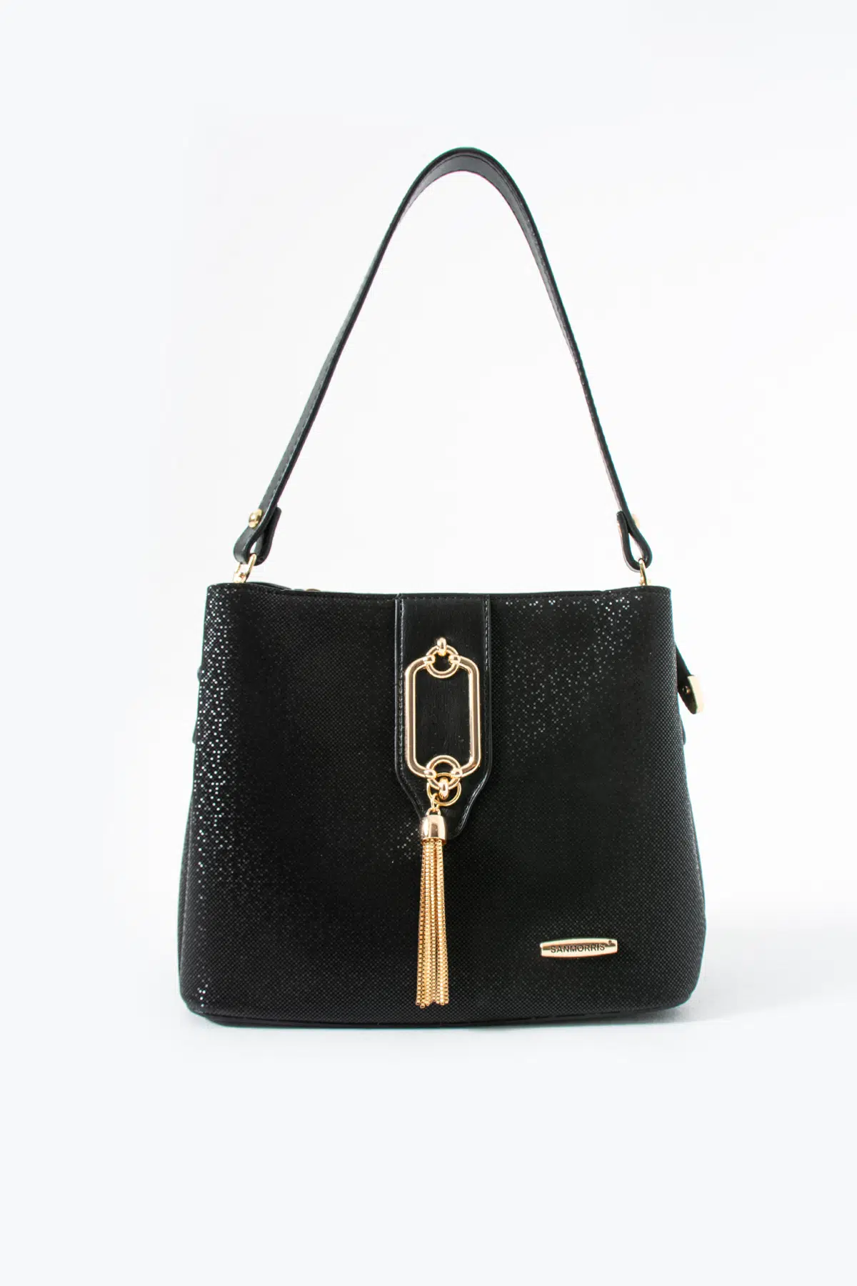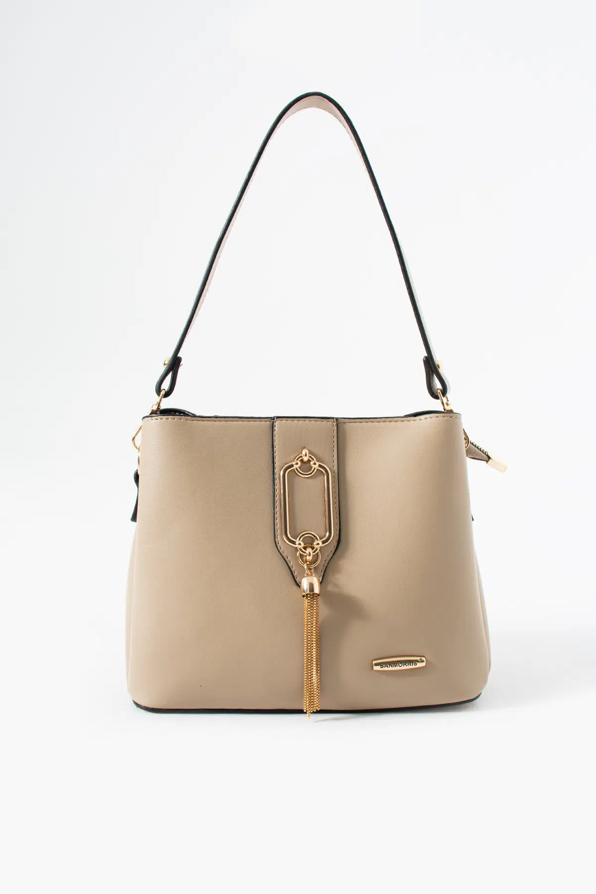 Gold halka ve püskül detayıyla ön plana çıkan bu özel tasarım, hem günlük kullanıma hem de özel gün kombinlerine şıklık katıyor.