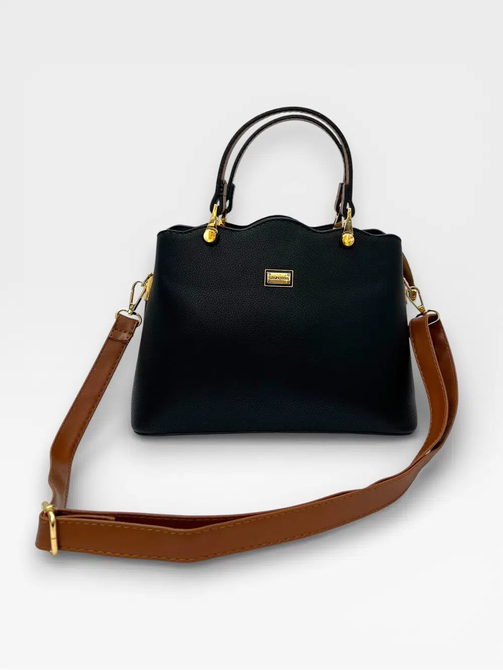 Kadın Uzun Askılı 4 Bölmeli Gold Aksesuarlı Sade Siyah Taba Garnili Şık Omuz Ve El Çantası