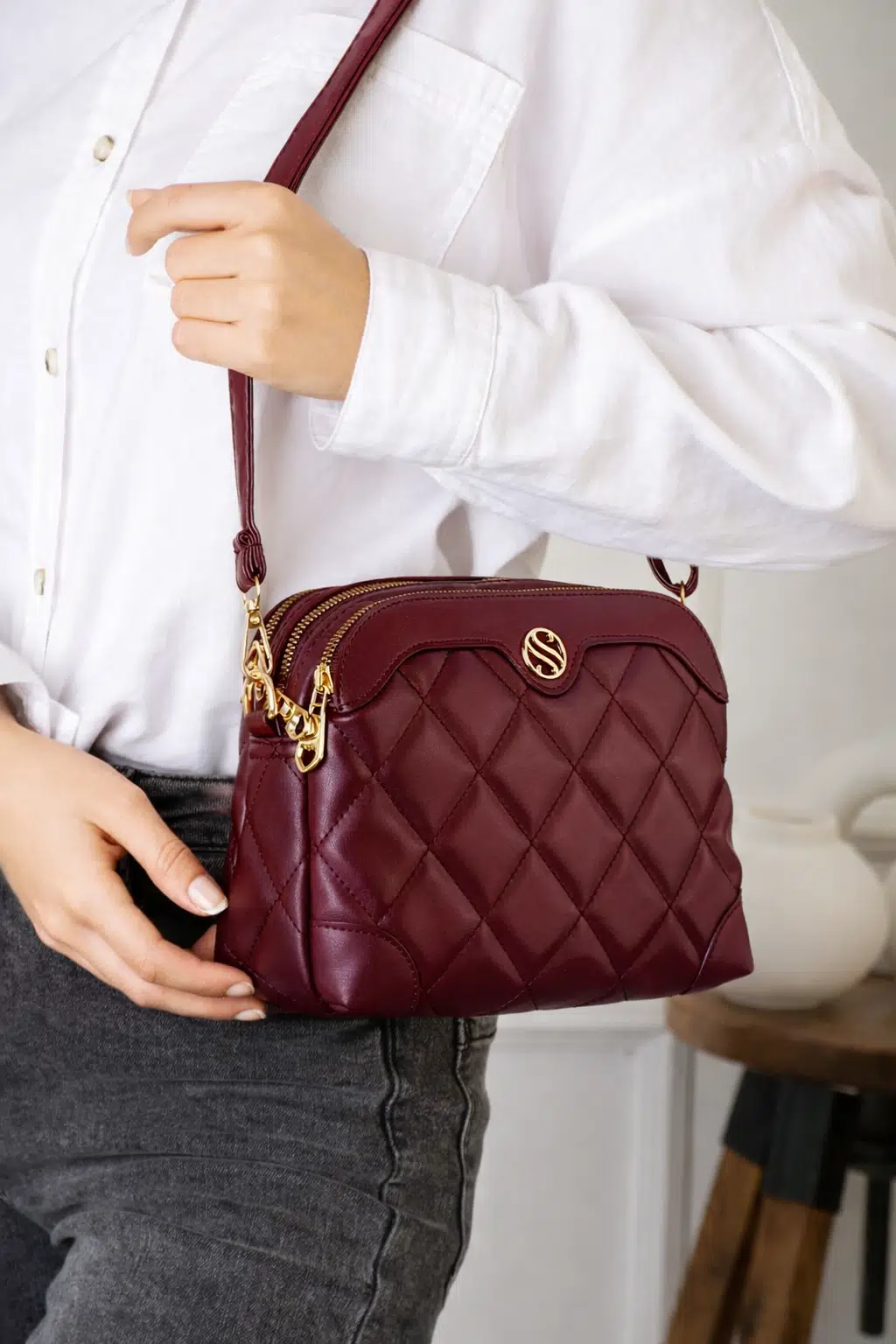 Kadın Ayarlanabilir Çapraz Askılı 4 Bölmeli Borda Mat Omuz ve Çapraz Çanta 1267