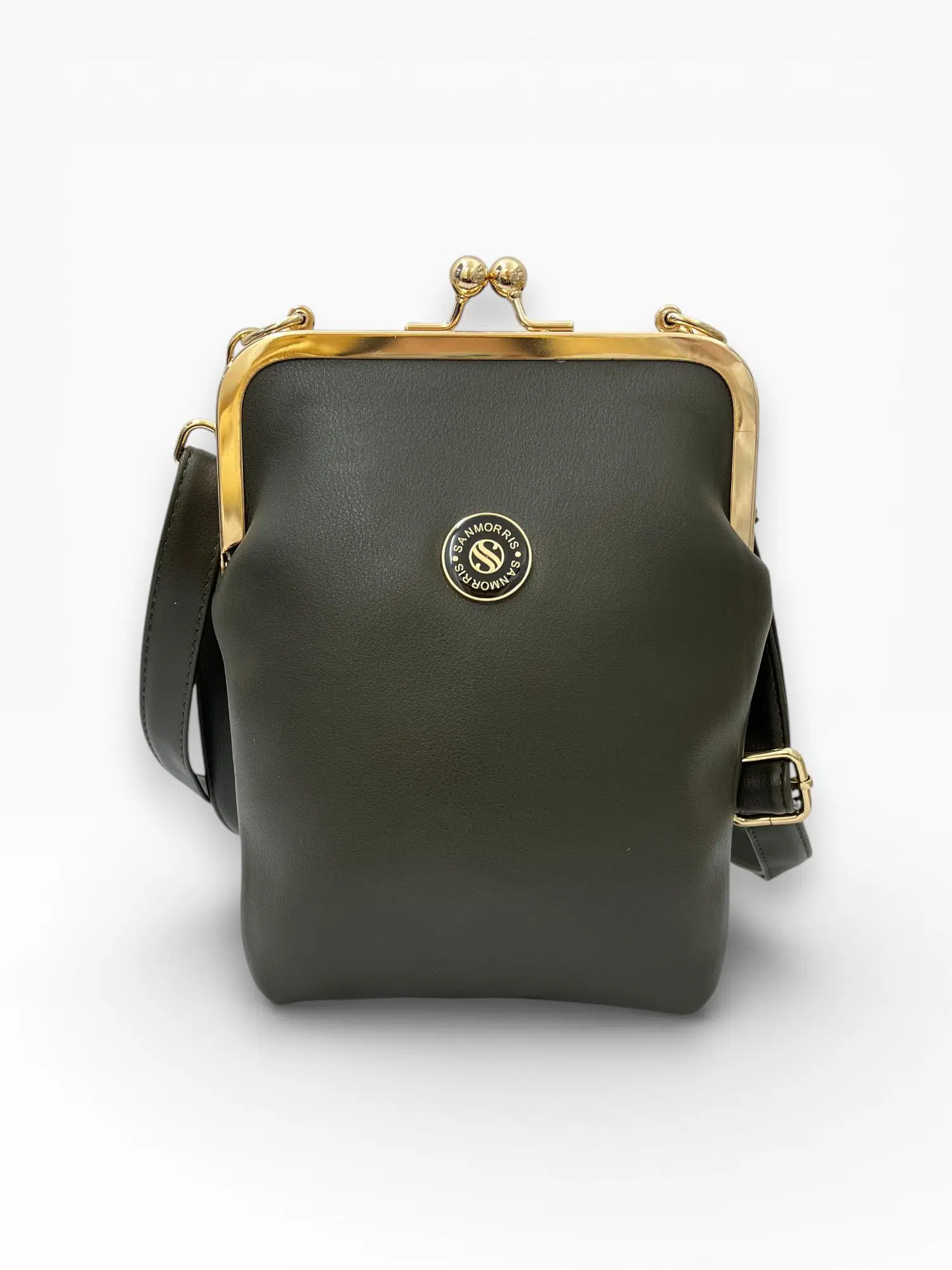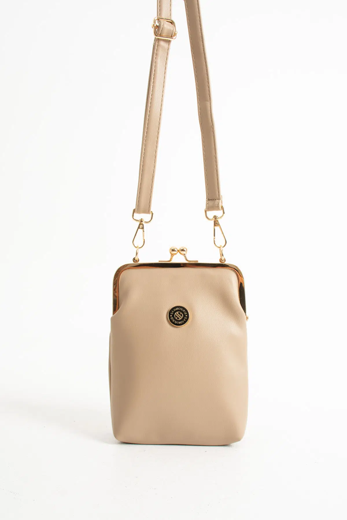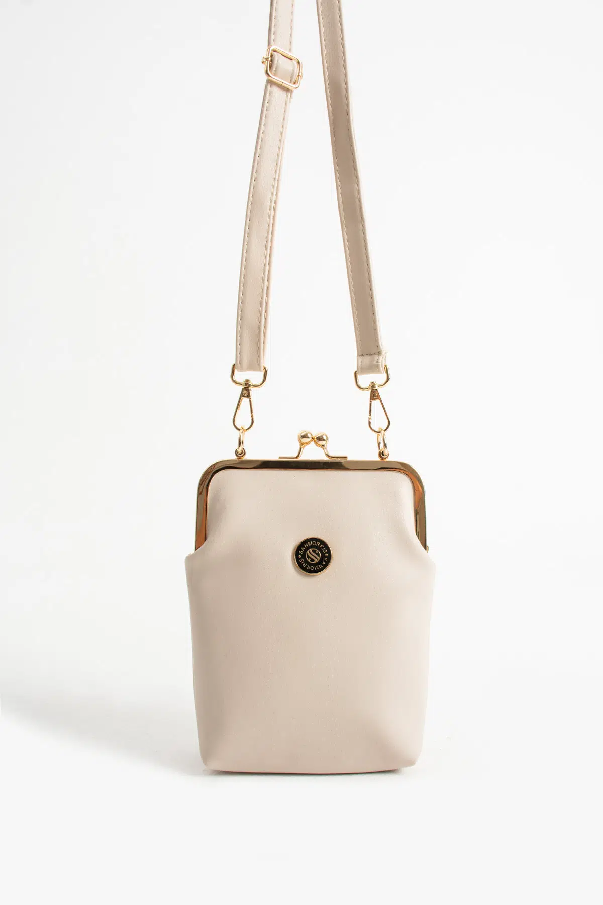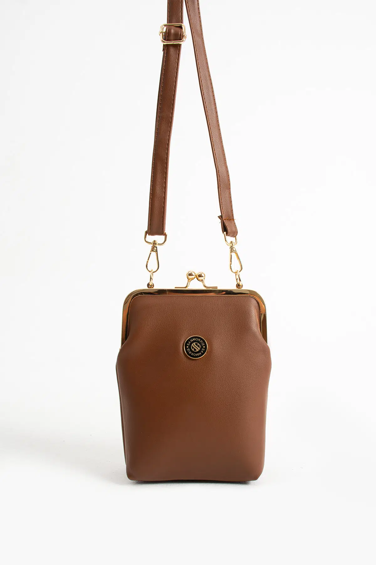Sanmorris kadın burslu gold aksesuarlı ayarlanabilir çapraz askılı suni deri omuz çantası stoklarımızda.