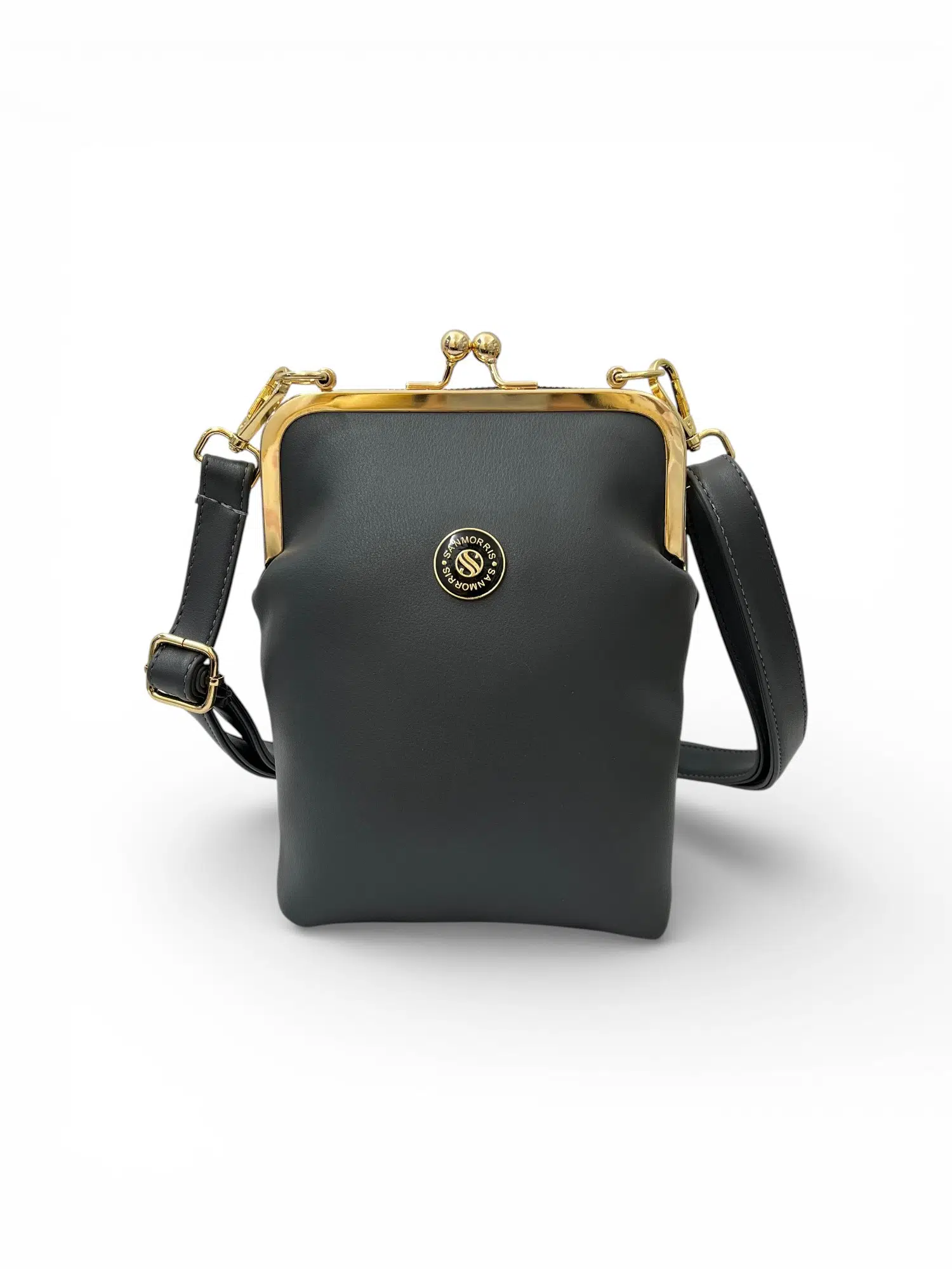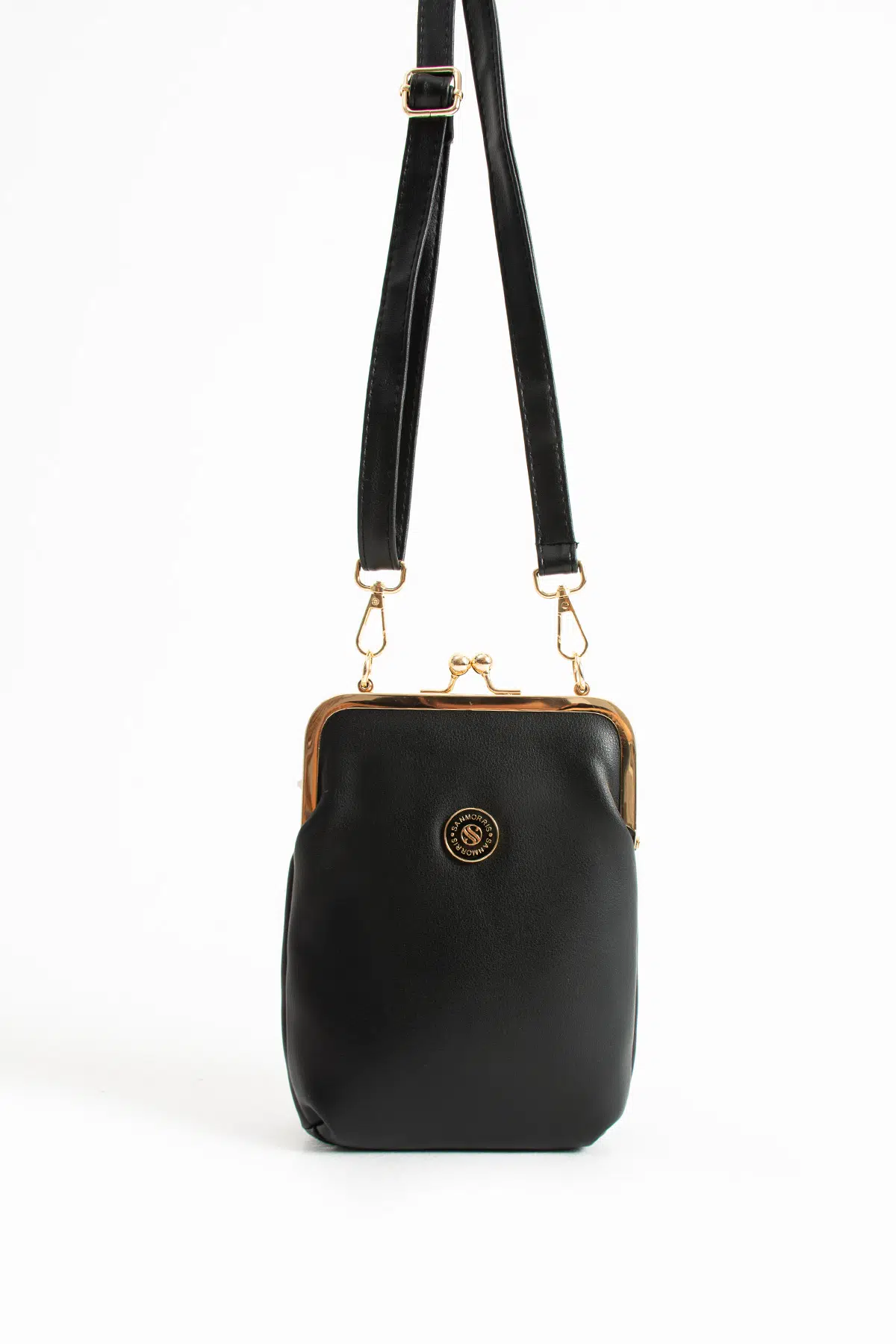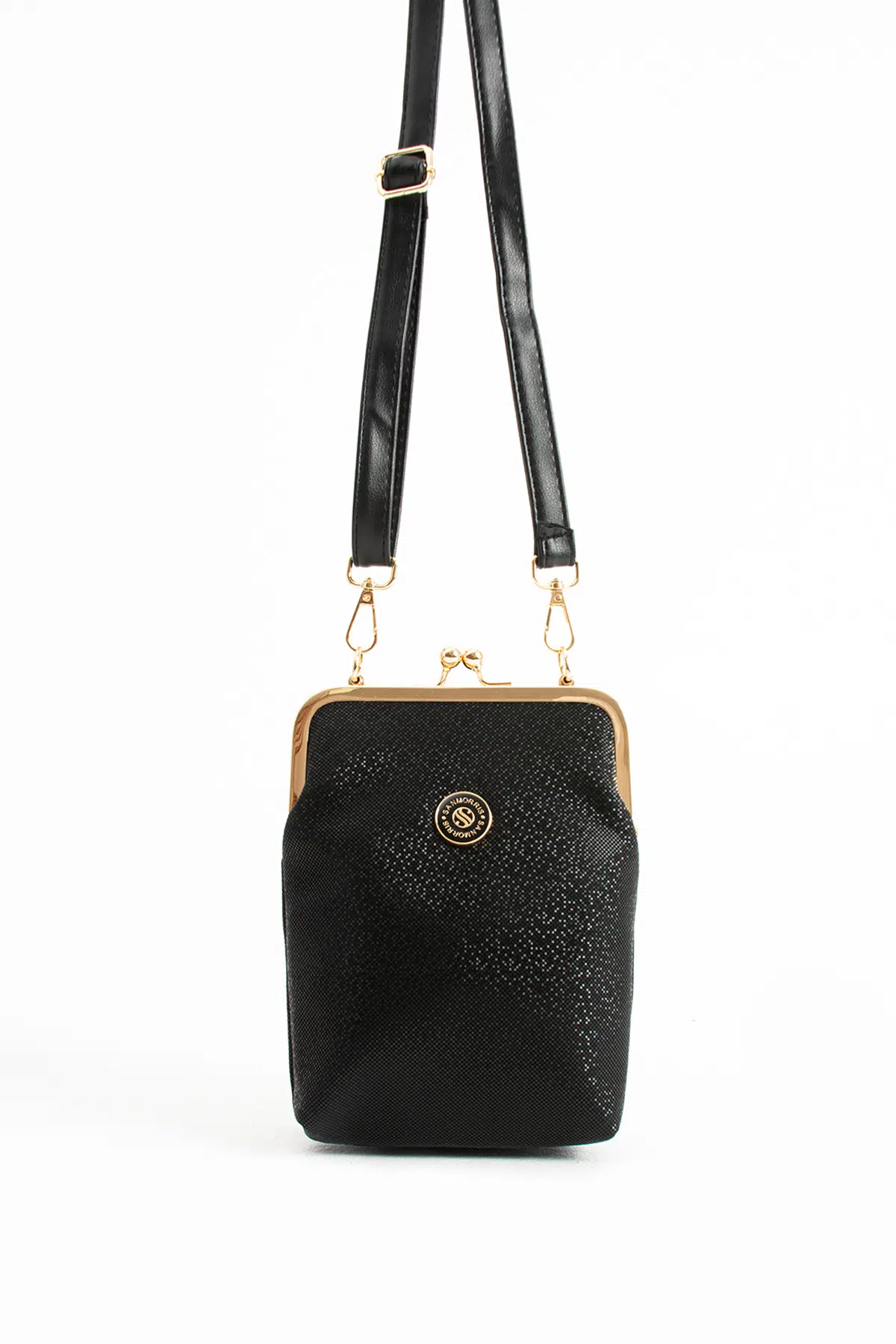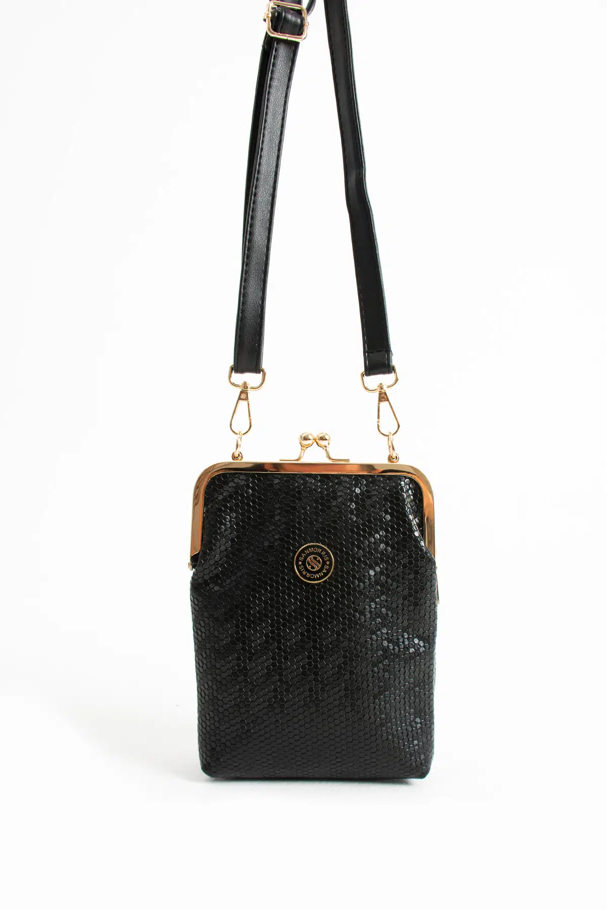 Sanmorris kadın burslu gold aksesuarlı ayarlanabilir çapraz askılı suni deri omuz çantası stoklarımızda.
