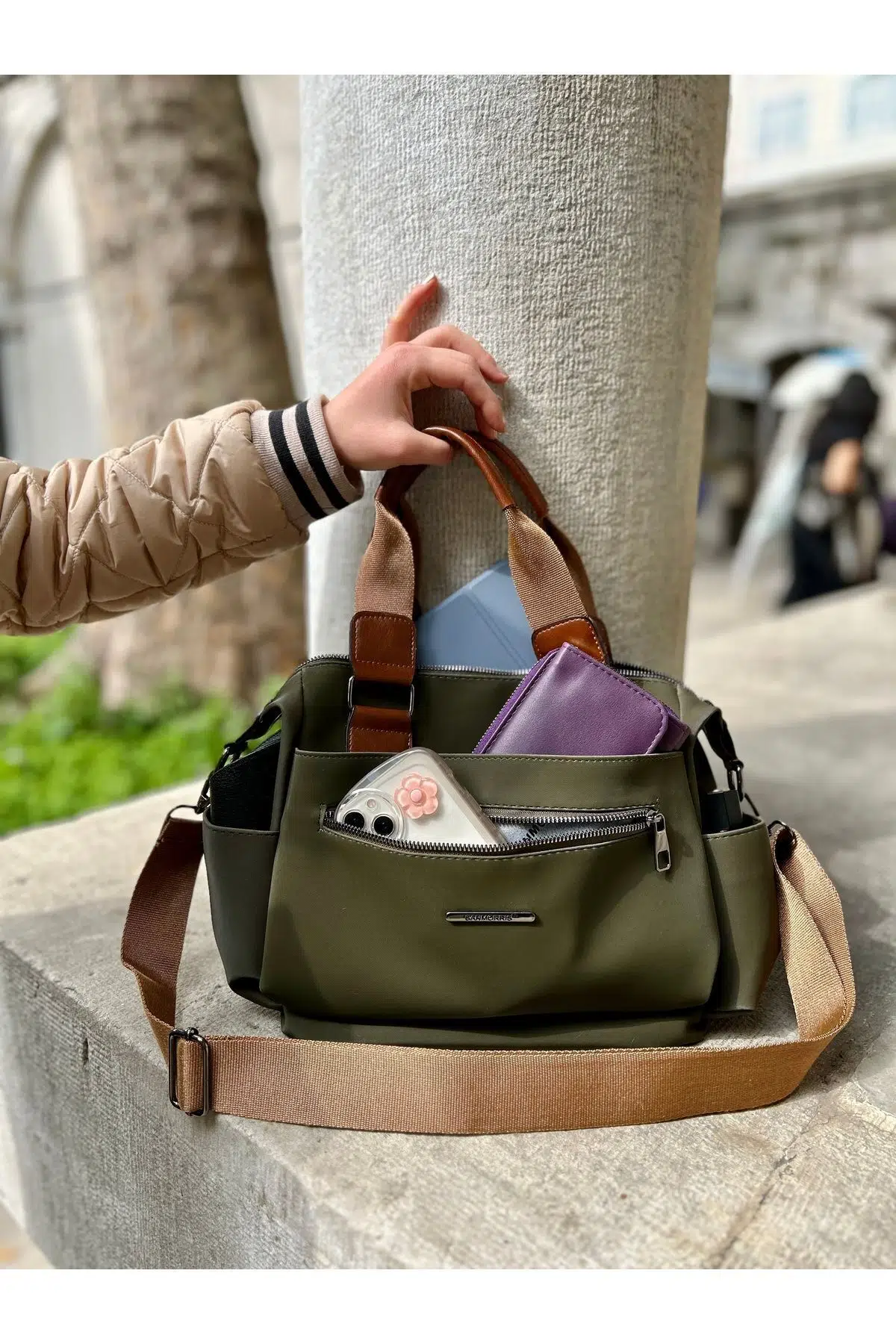 Sanmorris markalı ayarlanbilir çapraz askılı çok gözlü el ve omuz çantası modelimiz birbirinden farklı renk seçeneğiyle stoklarımızdadır; Ölçüleri: En:30cm Boy:22cm Taban Genişliği:14cm; Yüksek kalite saten suni deri ve iç astar kullanılarak üretilmiştir; Suya dayanıklı paraşüt kumaştır; Çapraz askısı dilediğiniz boyda ayarlanabilmektedir; Çok gözlü ve geniş iç hacmi sayesinde günlük hayatınızı kolaylaştırırken şık tasarımıyla da kombinlerinizin vazgeçilmezi olacak; Dilerseniz çapraz askısı tamamen çıkarak yalnızca el çantası olarak da kullanılabilmektedir; Temizliğini nemli bez ile yapınız; ;;