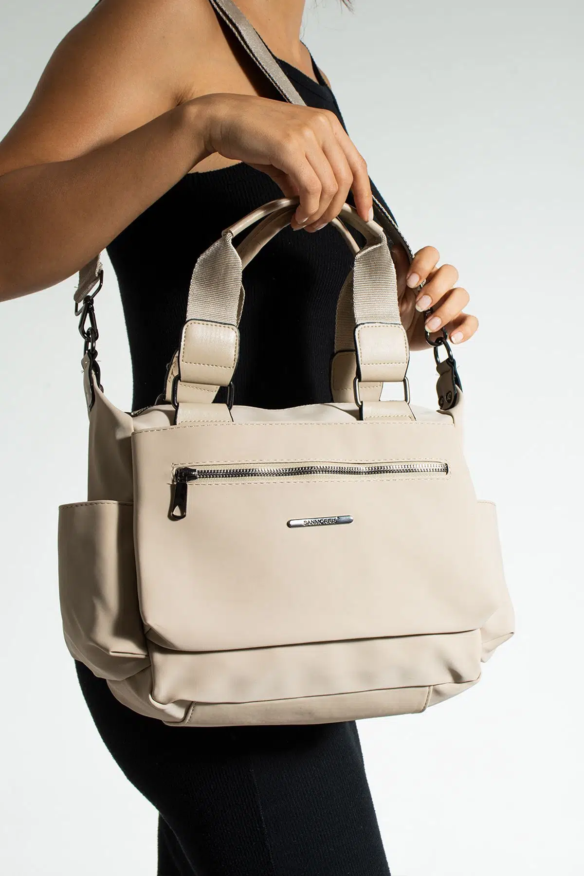 Sanmorris markalı ayarlanbilir çapraz askılı çok gözlü el ve omuz çantası modelimiz 5 farklı renk seçeneğiyle stoklarımızdadır; Ölçüleri: En:30cm Boy:22cm Taban Genişliği:14cm; Yüksek kalite saten suni deri ve iç astar kullanılarak üretilmiştir; Suya dayanıklı paraşüt kumaştır; Çapraz askısı dilediğiniz boyda ayarlanabilmektedir; Çok gözlü ve geniş iç hacmi sayesinde günlük hayatınızı kolaylaştırırken şık tasarımıyla da kombinlerinizin vazgeçilmezi olacak; Dilerseniz çapraz askısı tamamen çıkarak yalnızca el çantası olarak da kullanılabilmektedir; Temizliğini nemli bez ile yapınız; ;;
