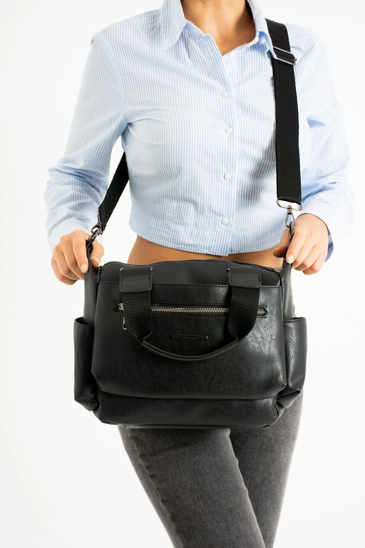 Kadın Suni Deri Çok Gözlü Kullanışlı Ayarlanabilir Çapraz Askılı Siyah Mat Omuz Çantası