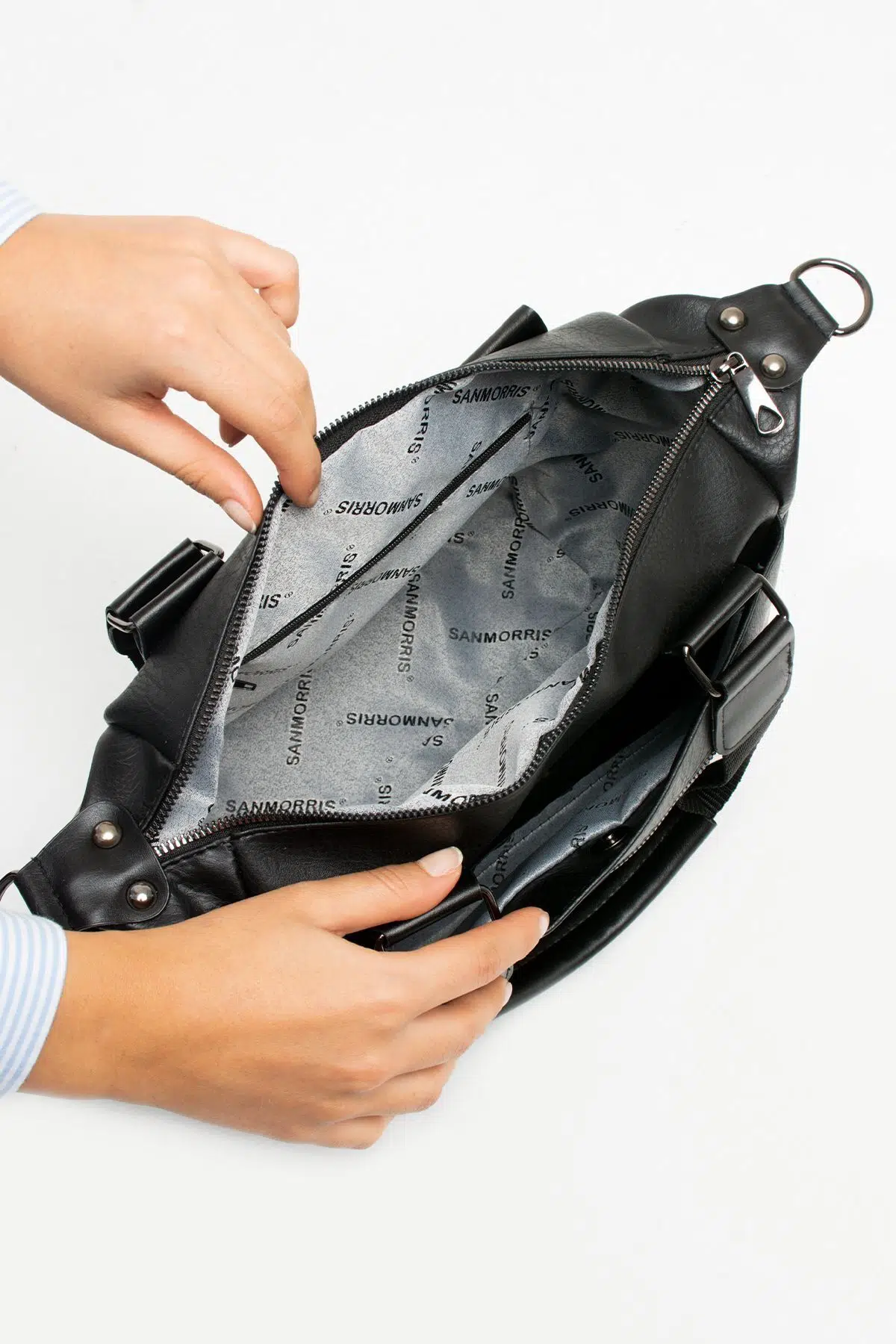 Sanmorris markalı ayarlanbilir çapraz askılı çok gözlü el ve omuz çantası modelimiz stoklarımızdadır. ; En:30cm ; Boy:22cm ; Taban Genişliği:14cm ; Yüksek kalite saten suni deri ve iç astar kullanılarak Türkiye'de üretilmiştir. Yumuşak dokulu bir kumaştır. Çapraz askısı dilediğiniz boyda ayarlanabilmektedir. Çok gözlü ve geniş iç hacmi sayesinde günlük hayatınızı kolaylaştırırken şık tasarımıyla da kombinlerinizin vazgeçilmezi olacak. Dilerseniz çapraz askısı tamamen çıkarak yalnızca el çantası olarak da kullanılabilmektedir. Temizliğini nemli bez ile yapınız. ;