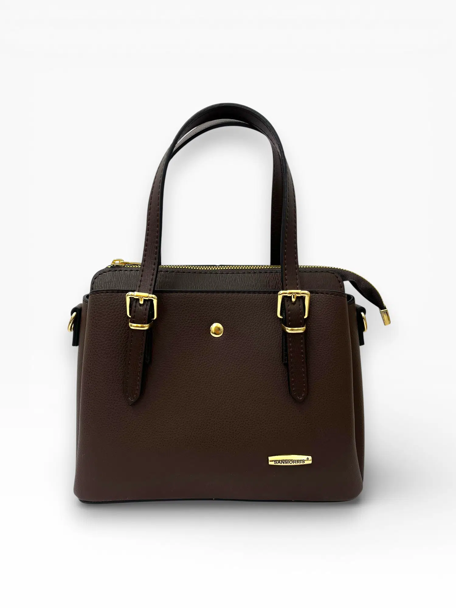 Kadın Uzun Askılı 4 Bölmeli Gold Aksesuarlı Sade Şık Taba Omuz Ve El Çantası