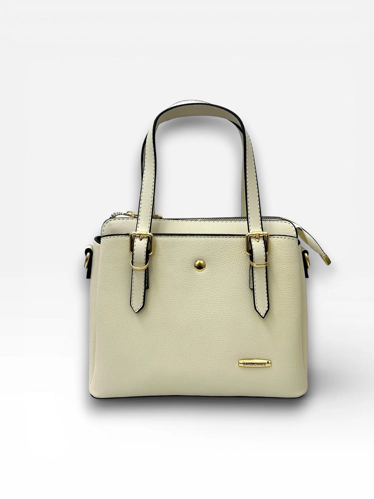 Kadın Uzun Askılı 4 Bölmeli Gold Aksesuarlı Sade Şık Kum Omuz Ve El Çantası