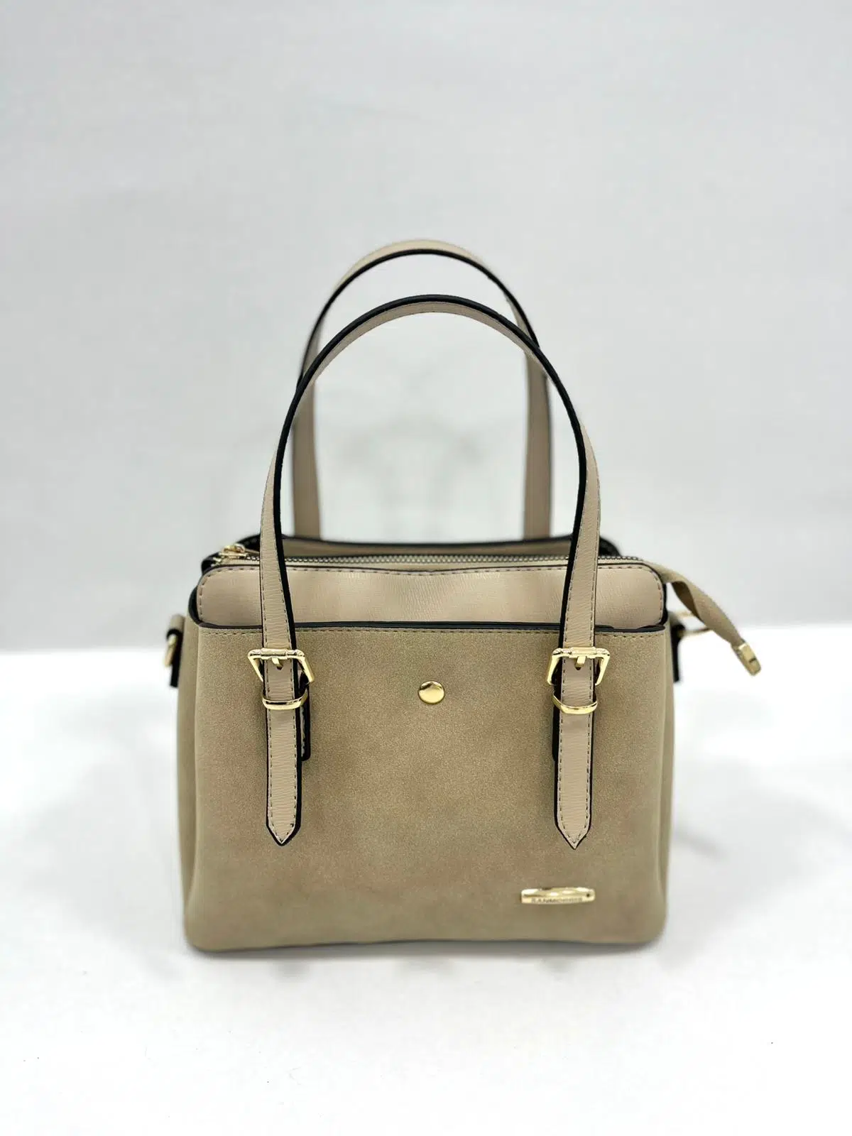 Kadın Uzun Askılı 4 Bölmeli Gold Aksesuarlı Sade Şık Kum Omuz Ve El Çantası