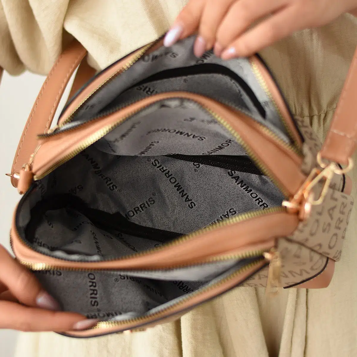 Sanmorris markalı 4 bölmeli çapraz çanta modelimiz stoklarımızdadır. ; Boy: 19 cm ; En: 23 cm ; Taban Genişliği: 7cm ; Yüksek kalite suni deri, astar ve aksesuar kullanılarak Türkiye'de üretilmiştir. Çapraz askısı dilediğiniz boya göre ayarlanabilmektedir. Günlük kombinlerinizin kurtarıcı parçası olacak bir modeldir. Gold aksesuarları şık kombinlerinizi de rahatlıkla tamamlayacaktır. Tamamen astar kaplı ve metal fermuarlı bölmeleri sayesinde günlük eşyalarınızı rahatlıkla ve şıklığınızdan ödün vermeden yanınızda taşıyabileceksiniz. Temizliğini nemli bez ile yapınız. ; Çapraz askısı sayesinde omuzda ve çapraz olarak kullanılablir. ; Astar bölümü deriye yapışık değildir. ; Deri yumuşaklığı ve özel suni deri seçeneğiyle Pratik ve rahat kullanım sağlıyor. ;