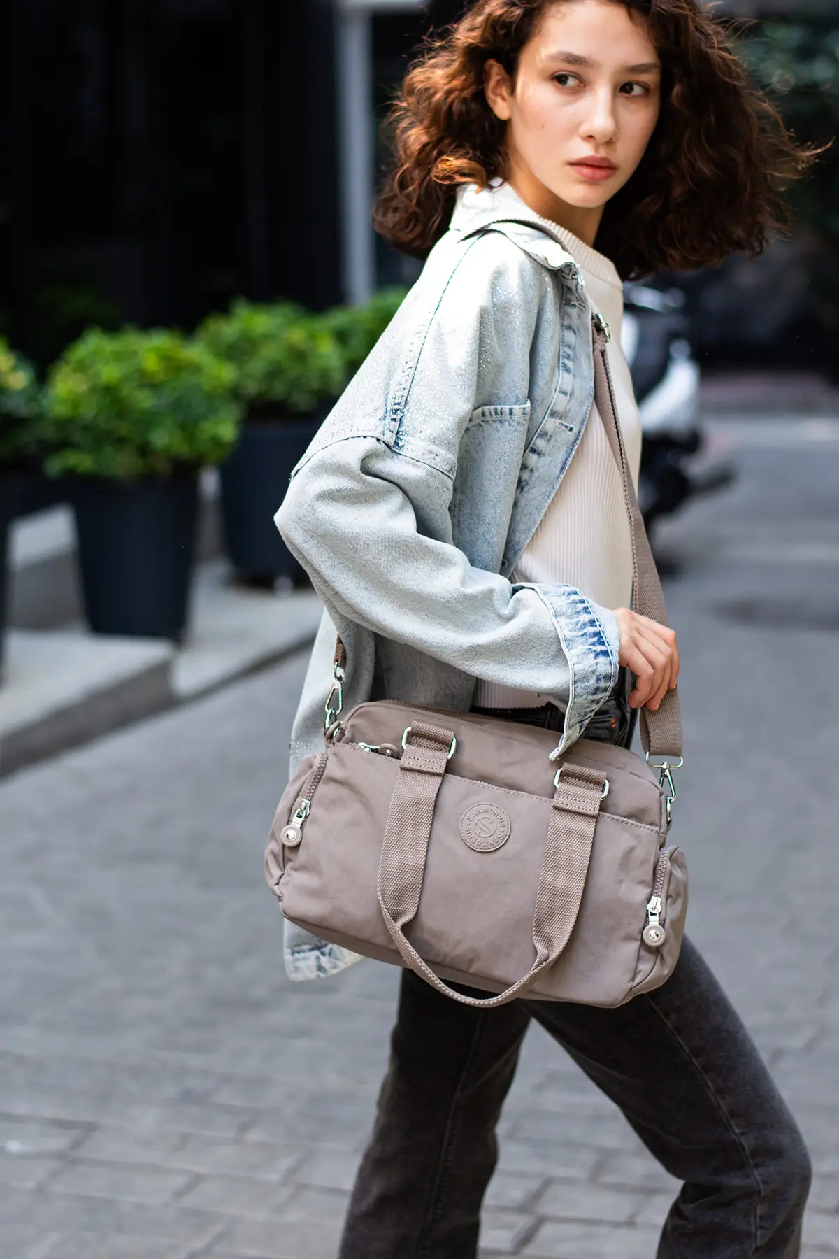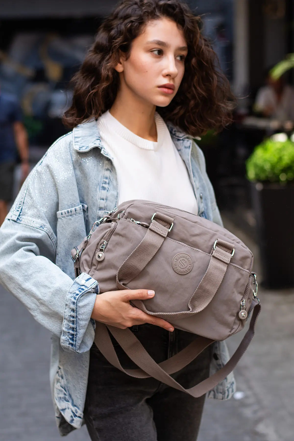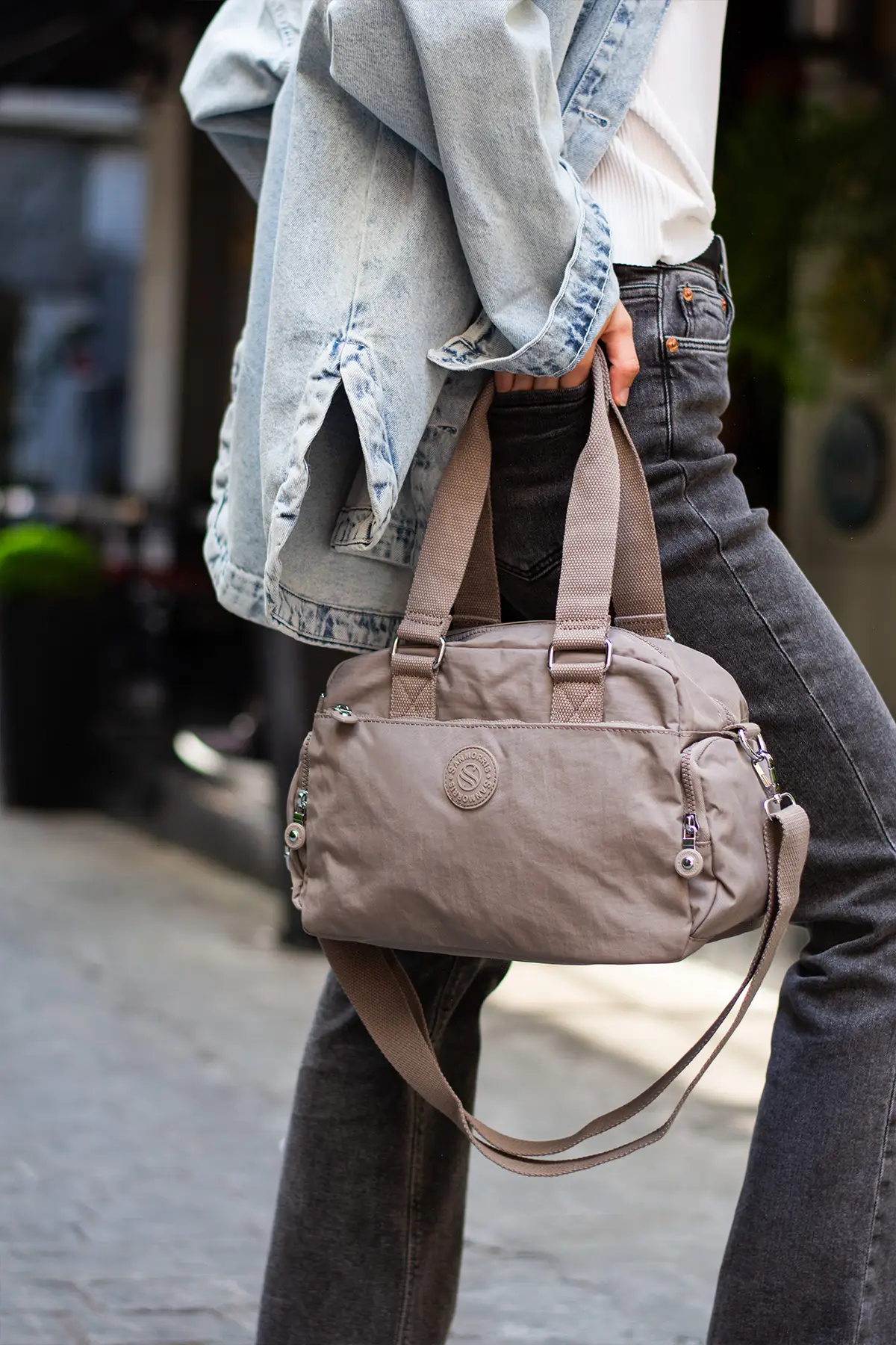 Unisex Krinkıl Kumaş Açık Gri Renkli Omuz Ve Çapraz Askılı Çanta